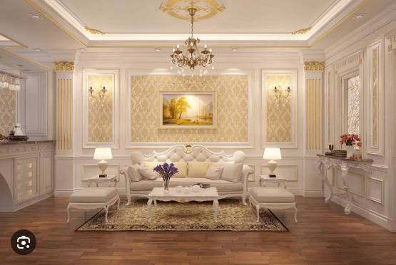Phối màu trần thạch cao phòng khách với phong cách cổ điển / tân cổ điển